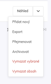 - Vymazat obsah – vymaže celý obsah externí audience