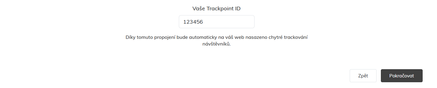 Vaše zkopírované Trackpoint ID vložte v nastavení doplňku do příslušného okna a uložte kliknutím na Pokračovat.