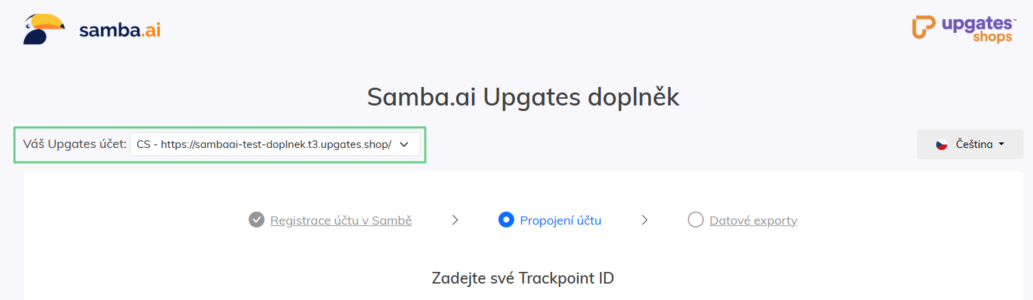 V rámci nastavení doplňku je třeba vyplnit Trackpoint ID vašeho e-shopu, které najdete ve svém účtu Samba. Pokud účet ještě nemáte, je nezbytné si ho vytvořit.