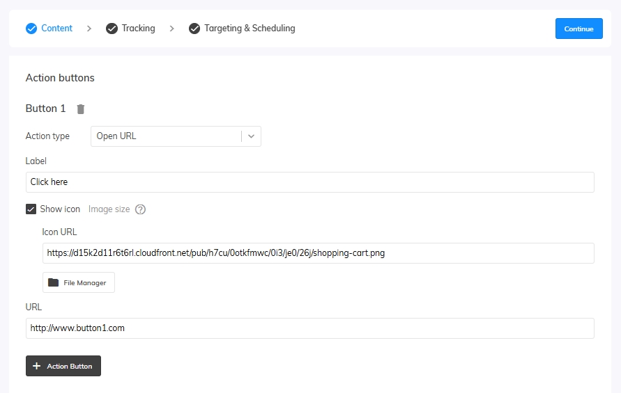 - Click on “New Push notification” and create a notification based on the required fields.